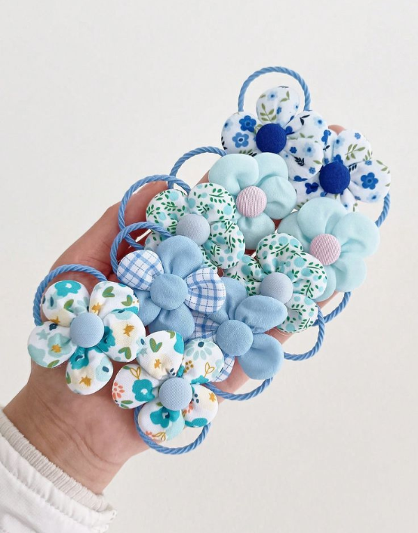 Add a touch of floral charm to your child’s look with the Blossom Hair Ties, designed for both style and comfort. Each hair tie features a soft elastic band adorned with a fabric flower in delightful blue patterns, perfect for ponytails, braids, or playful updos.