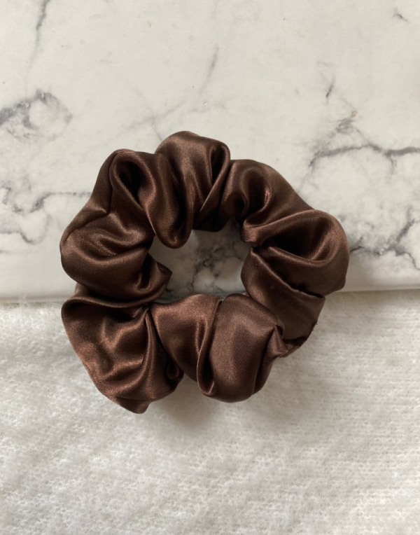 A luxurious satin hair scrunchie designed for comfort and style—available in black, brown, green, and off-white to suit every mood and outfit.