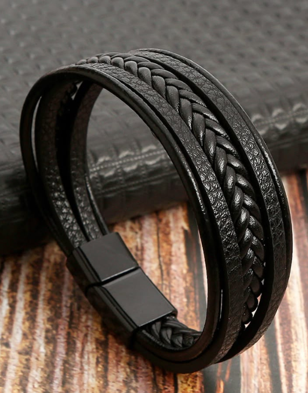 Elevate your accessory game with the Men’s Braided Leather Bracelet, a timeless piece that blends rugged texture with refined design. Made from premium black leather, this bracelet features a mix of braided and smooth strands that add depth and character to your look. The modern magnetic clasp ensures a secure and comfortable fit, making it easy to wear throughout the day. Whether paired with casual outfits or formal attire, this bracelet makes a subtle yet sophisticated statement. A versatile must-have for any wardrobe.