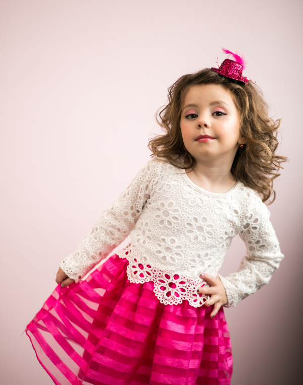 Crafted from soft, breathable fabric, it ensures all-day comfort while keeping your child stylish and confident. The intricate lace detailing lends it a timeless appeal, while the flowy skirt allows for easy movement, enabling endless twirls and smiles. Pair it with cute ballet flats or sparkly sandals to complete the look.