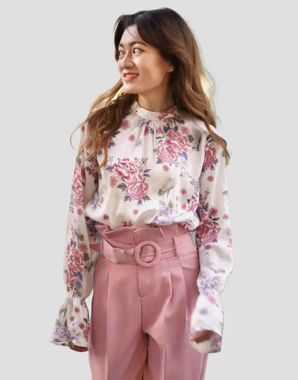Add a touch of elegance and charm to your wardrobe with the Rose Garden Floral Blouse. This beautifully designed top features a soft pink base adorned with a delicate floral print in lavender, crimson, and green, creating a romantic, garden-inspired look. Made from lightweight, breathable fabric, it offers both comfort and sophistication for all-day wear. The blouse includes subtle puff sleeves with gathered cuffs and a gently tailored fit that flatters the silhouette while maintaining a relaxed, feminine feel. Perfect for pairing with trousers, skirts, or jeans, it’s an ideal choice for brunch dates, office looks, or any occasion where you want to feel effortlessly graceful and put-together.